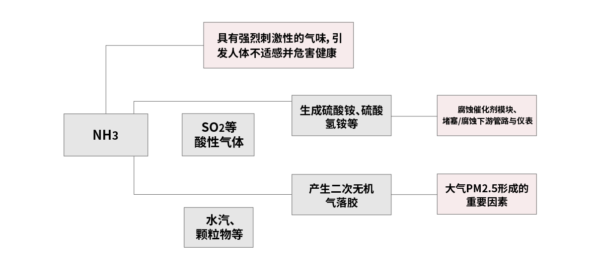 在工業(yè)脫硝中,氨逃逸是指未反應(yīng)的氨隨煙氣排放到大氣的現(xiàn)象。為滿足嚴(yán)格的氮氧化物排放標(biāo)準(zhǔn),企業(yè)常采用“過量噴氨”策略,導(dǎo)致氨逃逸率上升。我國現(xiàn)行大氣氨排放標(biāo)準(zhǔn)有11個(gè),限值范圍為8-30mg/m3。2024年1月,水泥和焦化行業(yè)超低排放意見發(fā)布,新增氨污染自動(dòng)監(jiān)測(cè)要求。若企業(yè)廢氣氨濃度超標(biāo),將面臨罰款、關(guān)停、約談等處罰。